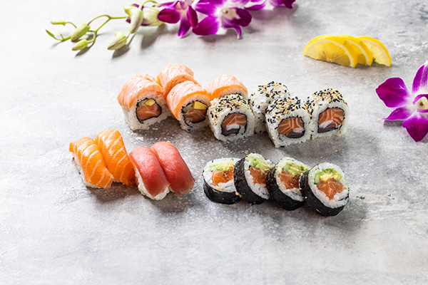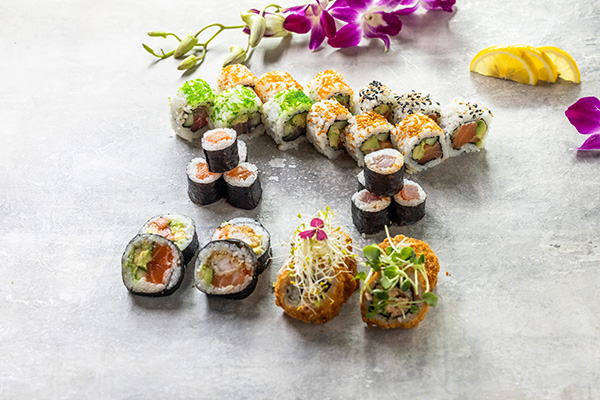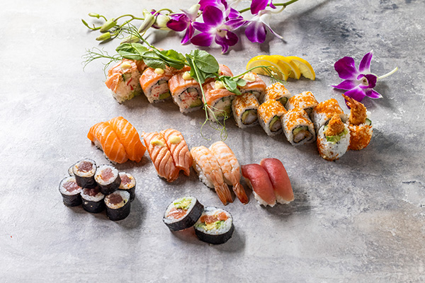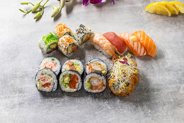 80 stk 20 stk. Nigiri, 16 stk. Uramaki, 6 stk. Futomaki, 16 stk. luksus Kaburimaki, 16 stk. Hosomaki, 6 stk. Crunch Rolls
