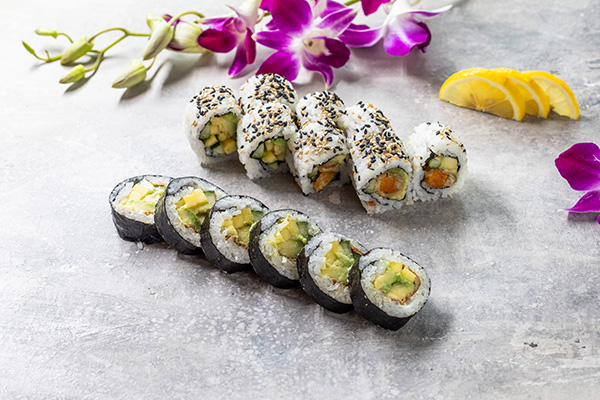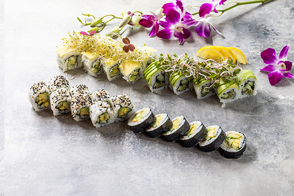 30 stk. 8 stk. Kaburimaki vegetar deluxe, 8 stk. mango deluxe, 8 stk. vegetar uramaki, 6 stk. vegetar futomaki.