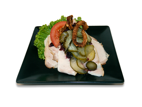 3 slags pålæg, 2 slags sild, kiks og ost.
