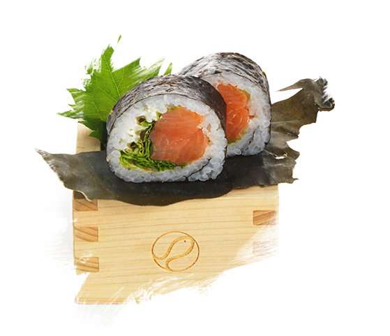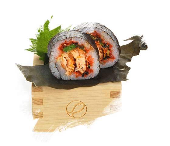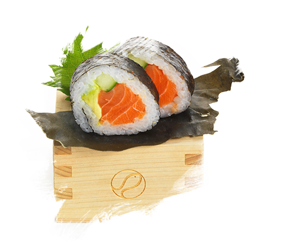 stegt laks • masago • chili sauce • avocado • forårsløg • unagi sauce