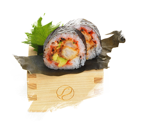 tempurarejer • masago • chili sauce • avocado • forårsløg • unagi sauce