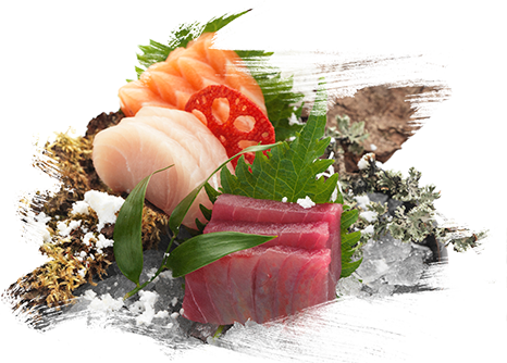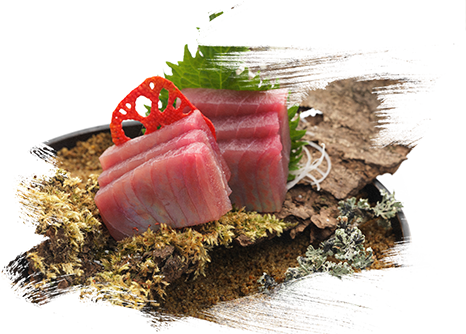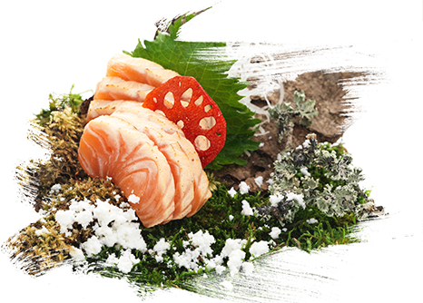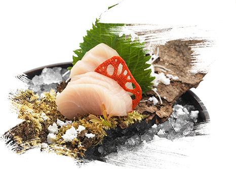 ponzu sauce, lotus chips, tobiko, masago, kinaradiser, wasabi & ingefær