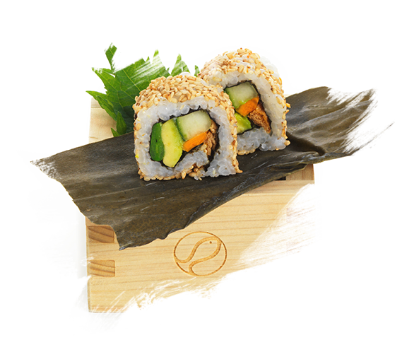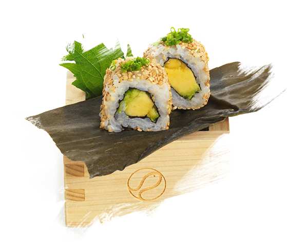 agurk • avocado • gulerod • inari • rullet i hvid sesam